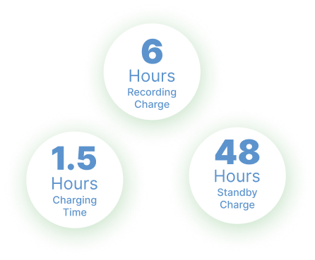 Dual Mic option offers an extended back up for single user usage that extends recording time to 12 Hours. Conveniently charge your second mic while using one – extending your operational recording infinitely.